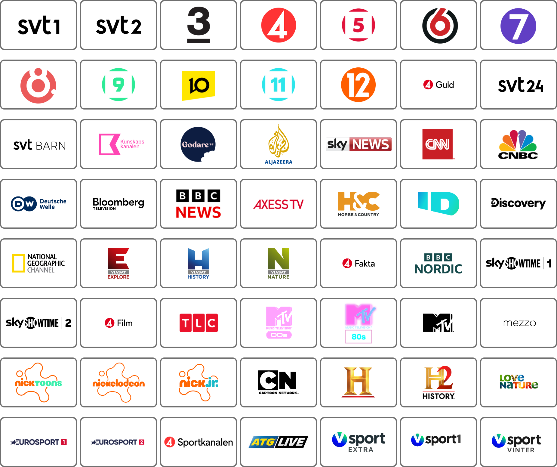 Familjefavoriten med en perfekt mix av underhållning, sport och streaming! Här får du ett brett kanalutbud med mycket att välja på – sport, fakta, nyheter, underhållning och massor av tv för barn. Även flera streamingtjänster, inklusive Viaplay, ingår via Allentes app.